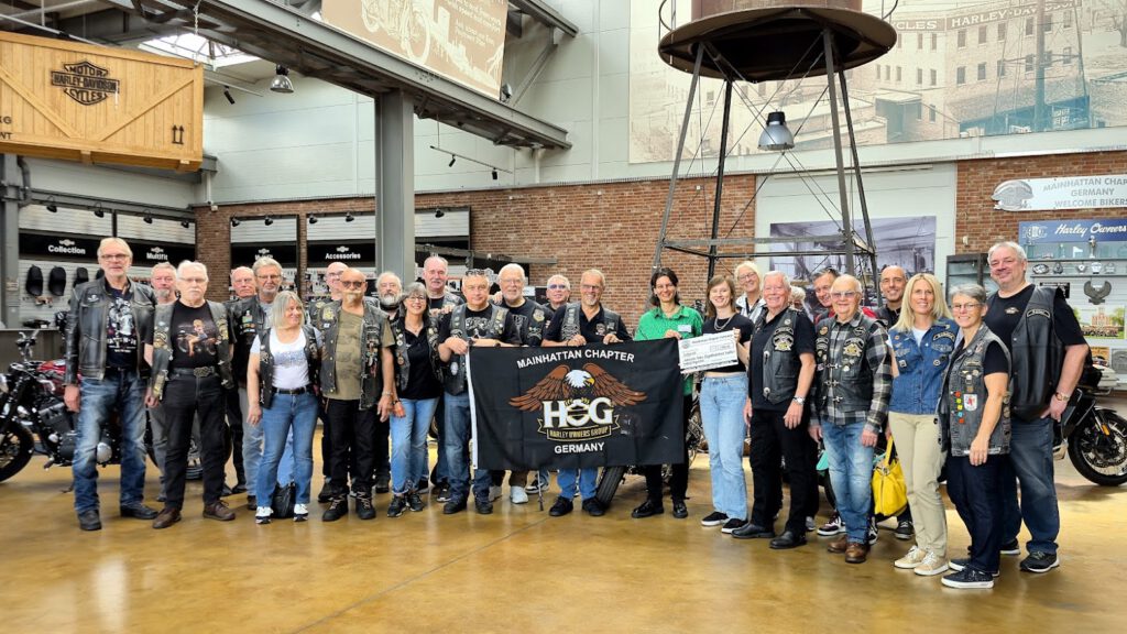 Dafür haben wir am 2. August in der Harley Factory einen Scheck an Klara, eine der Koordinationskräfte für den AKHD, übergeben! Bewundernswert, was diese Menschen – meist ehrenamtlich – mit ihrer Unterstützung beitragen um schwerstkranken Kindern und Jugendlichen, aber auch deren Eltern zu helfen.